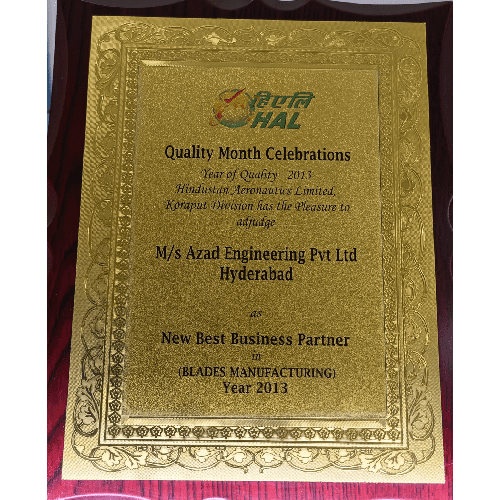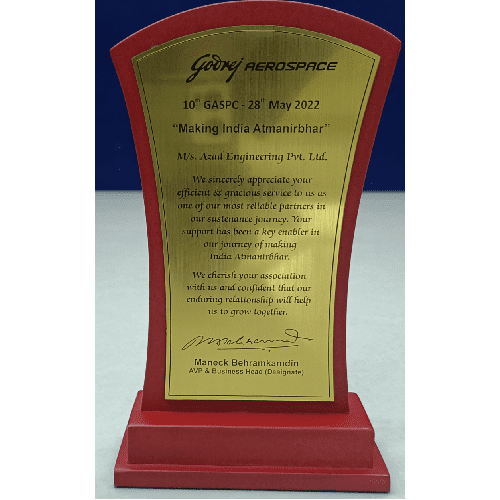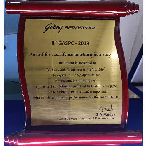 “Excellence in Manufacturing” award from Godrej & Boyce Aerospace for machining critical components.
